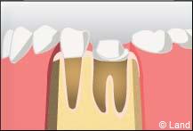 • les couronnes de substitution, ou dents à pivot, qui interviennent lorsque la destruction de la couronne naturelle de la dent est totale, et nécessite d’utiliser le canal radiculaire pour y placer un tenon (ou pivot).